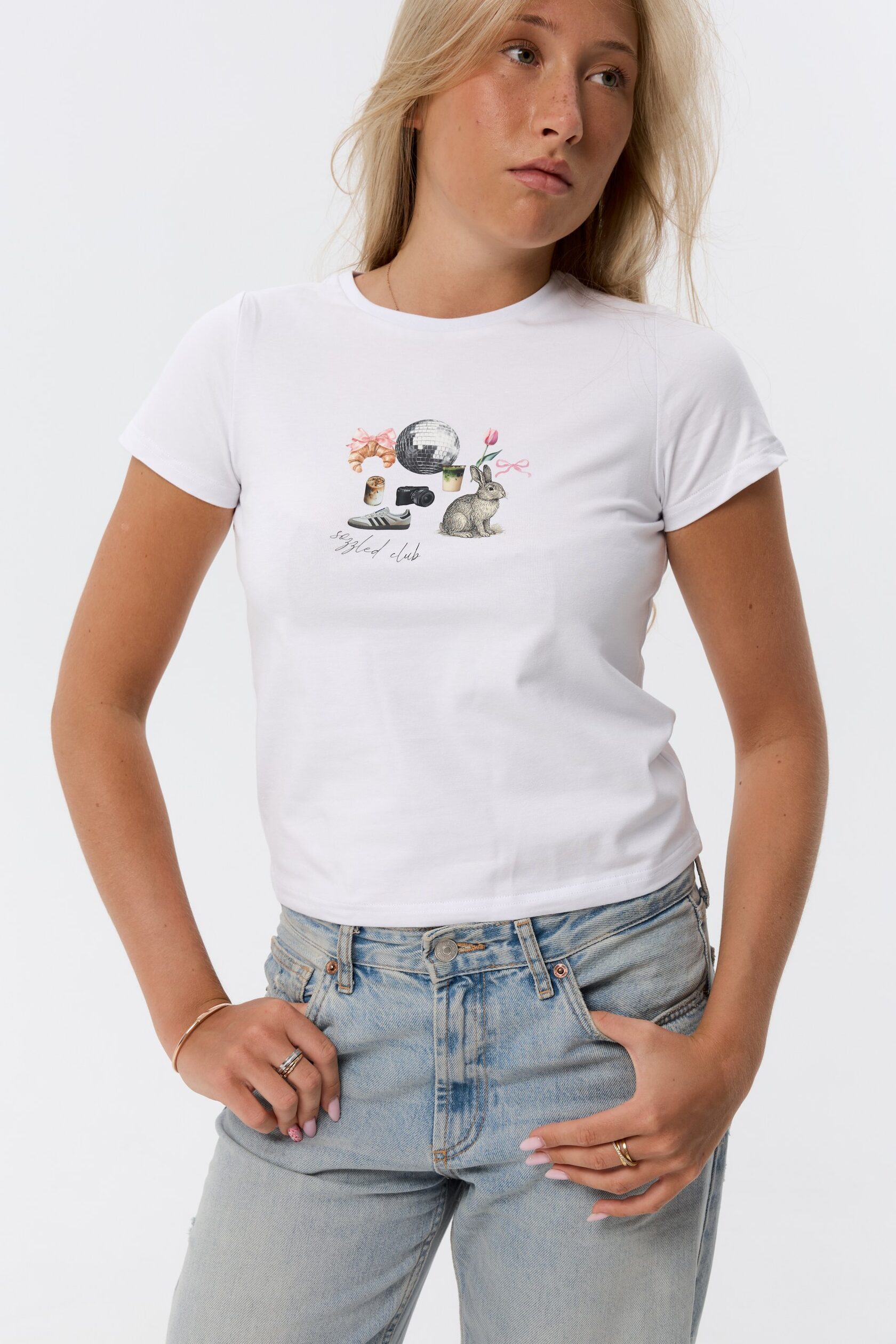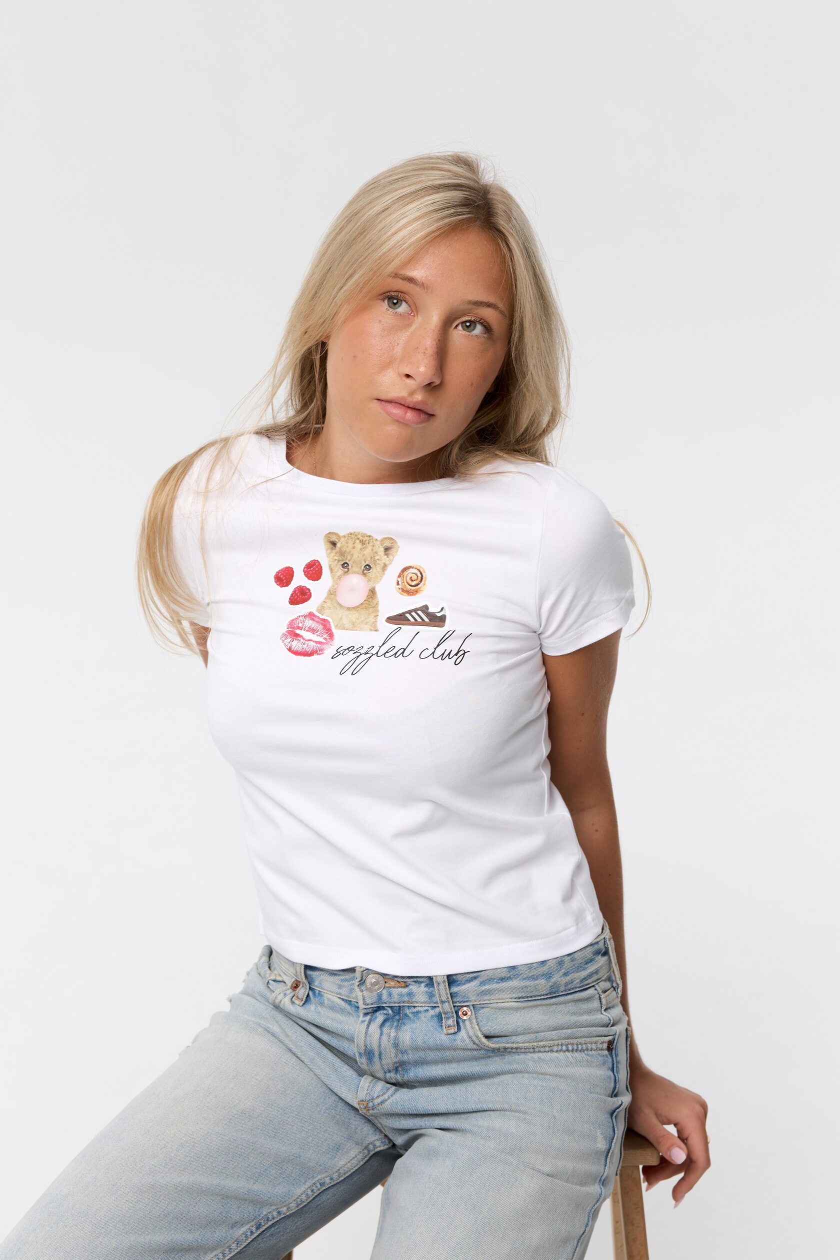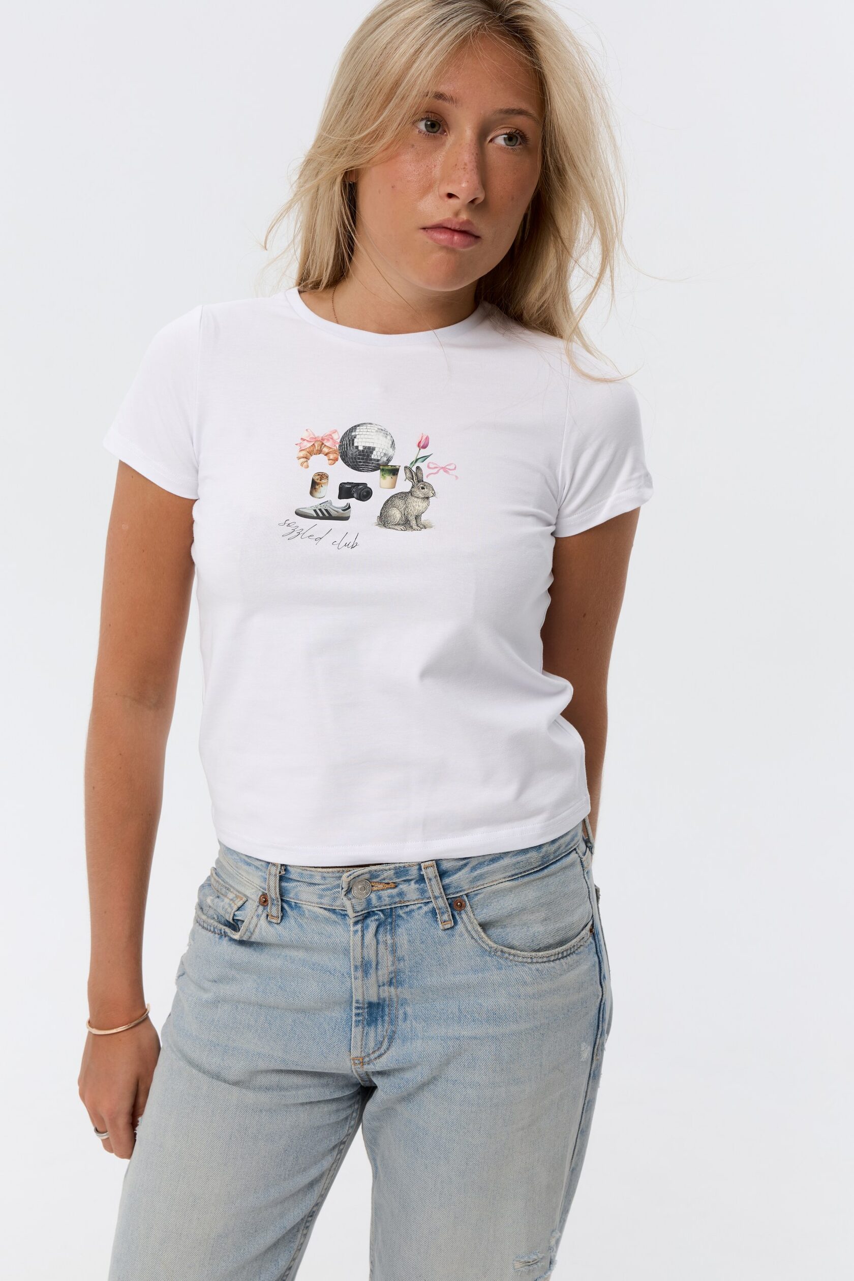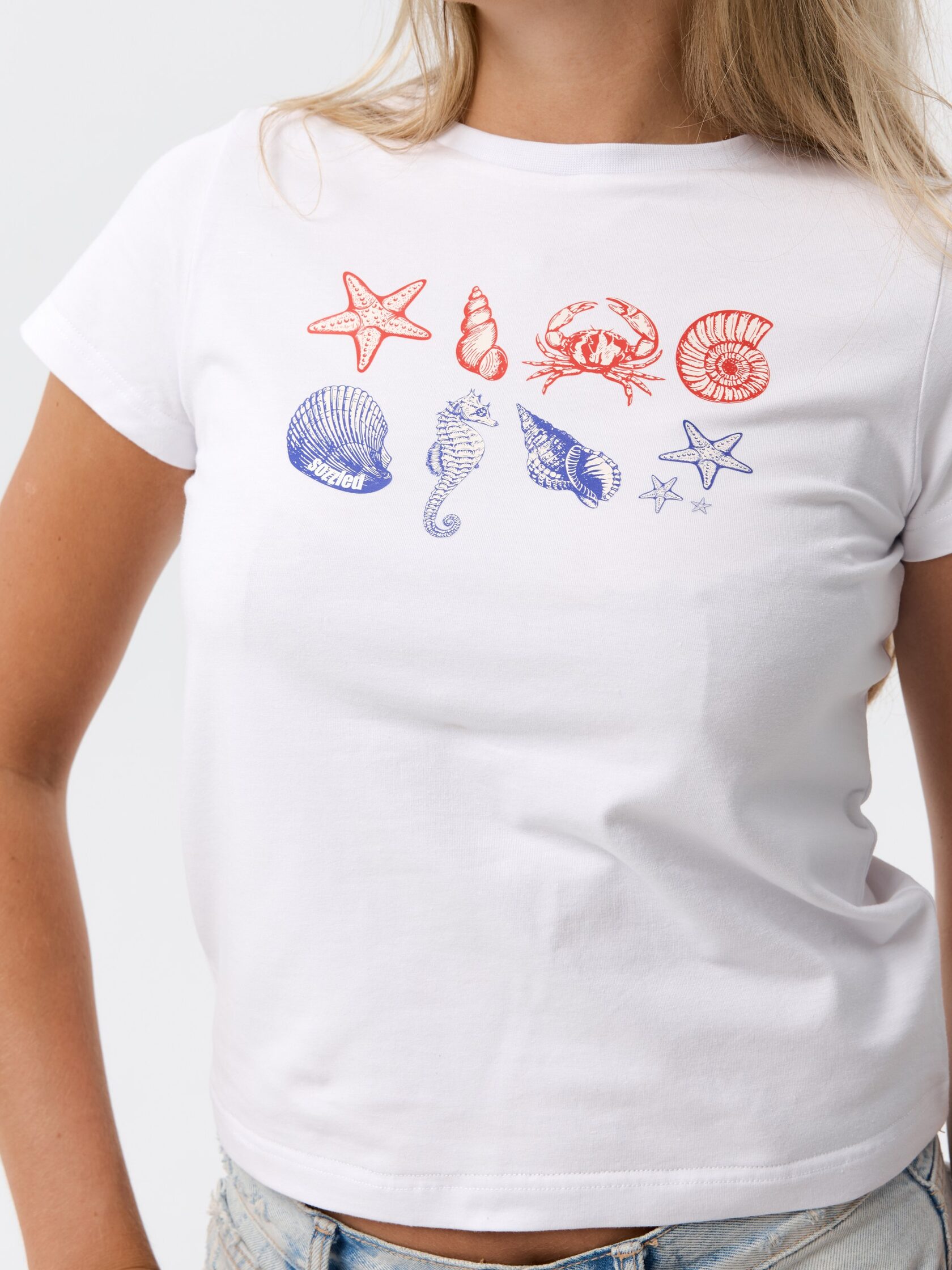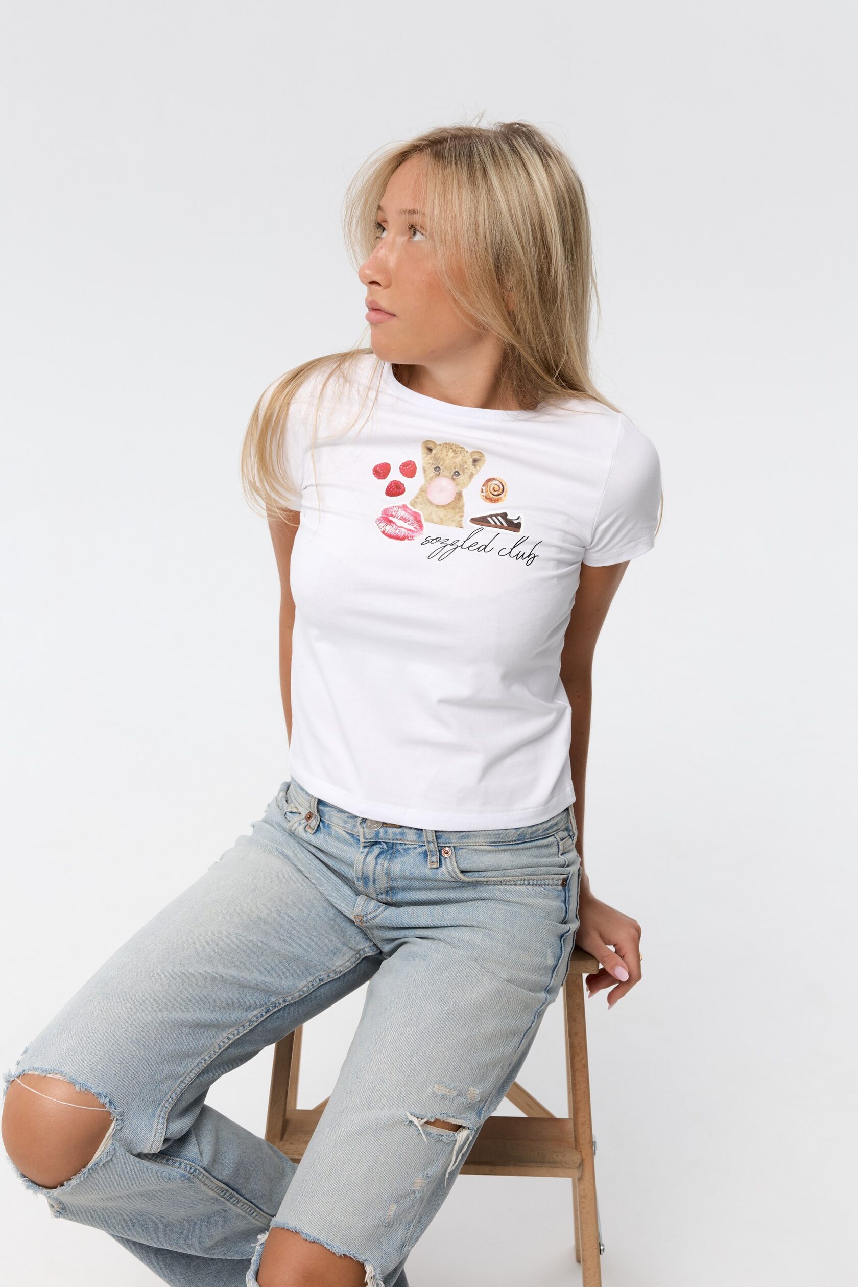 Мягкая белая baby tee с точной посадкой, из 92% хлопка и 8% полиэстера. Стильная, с уникальным принтом, добавляющим образу изюминку. Сделано с любовью в Питере.