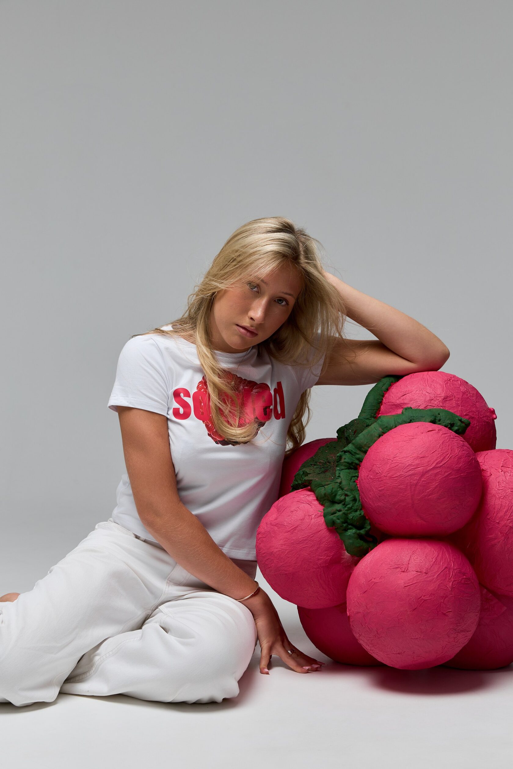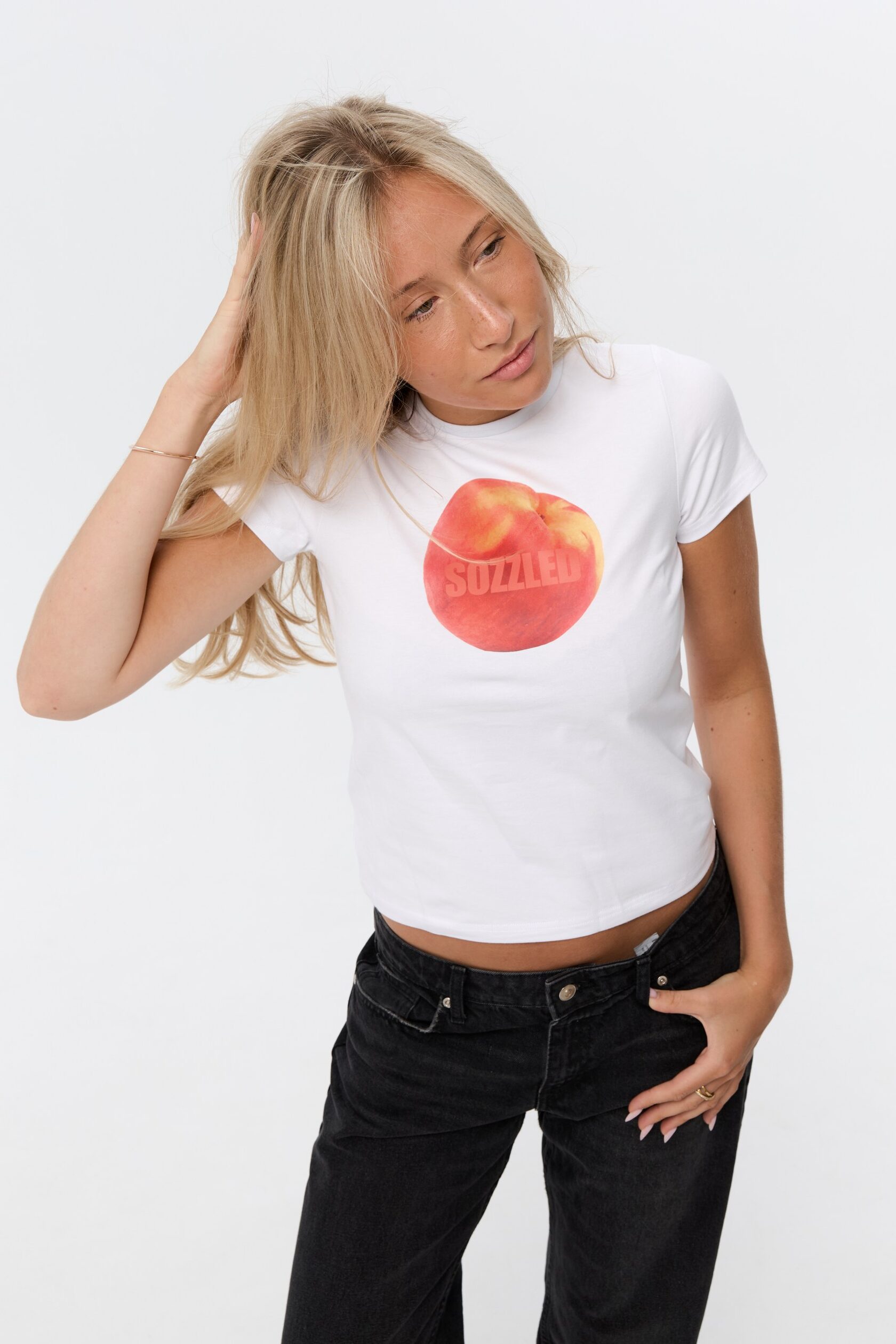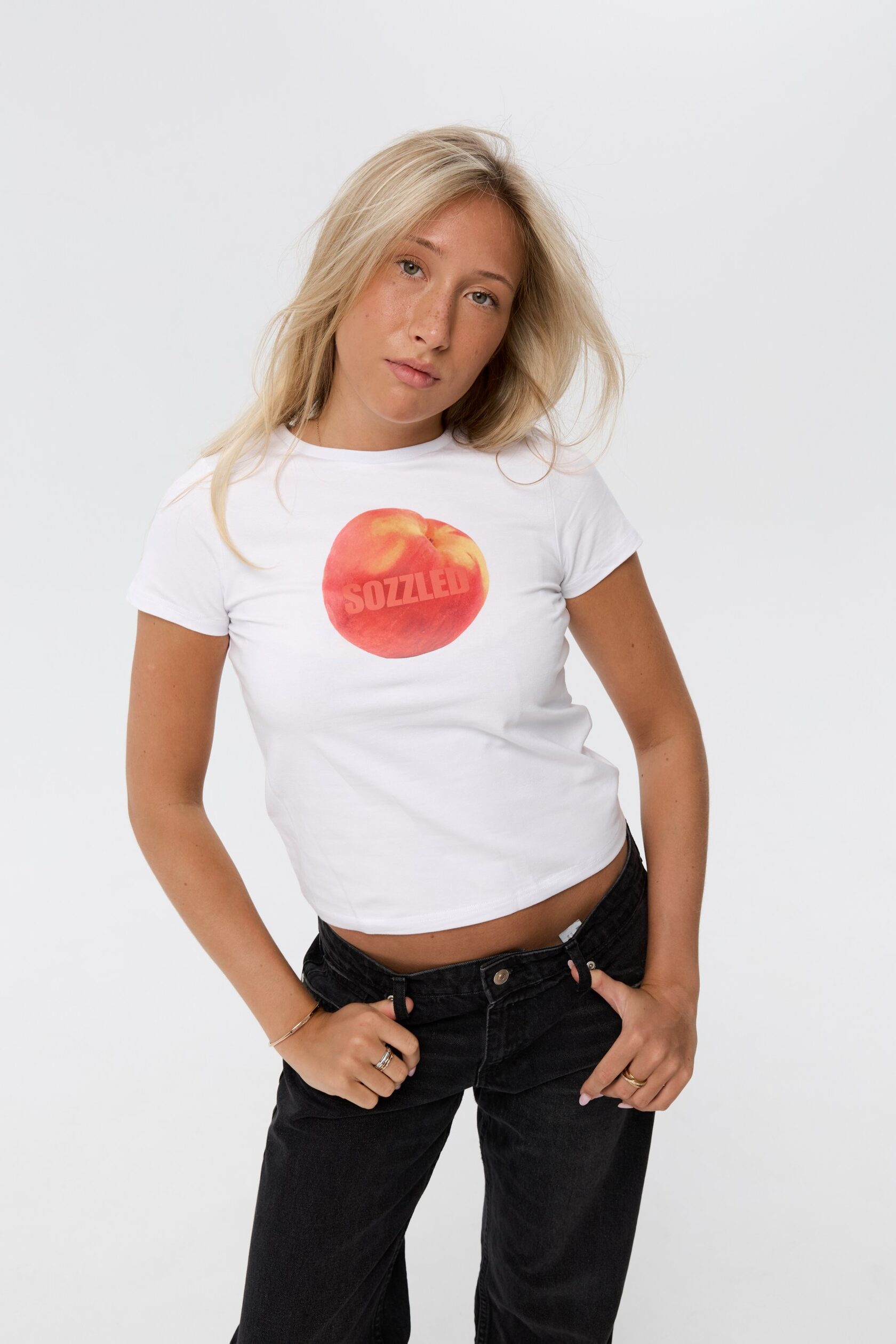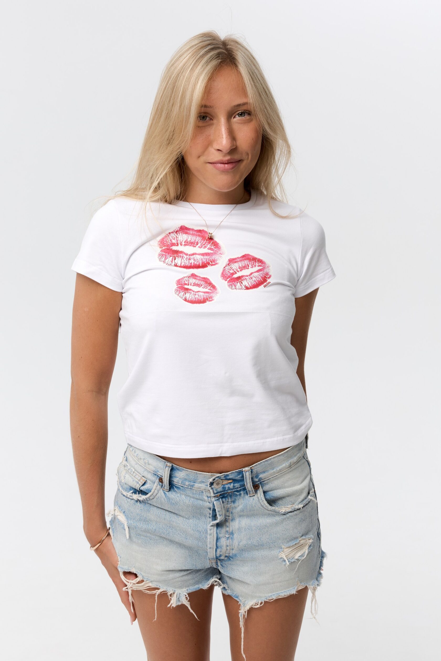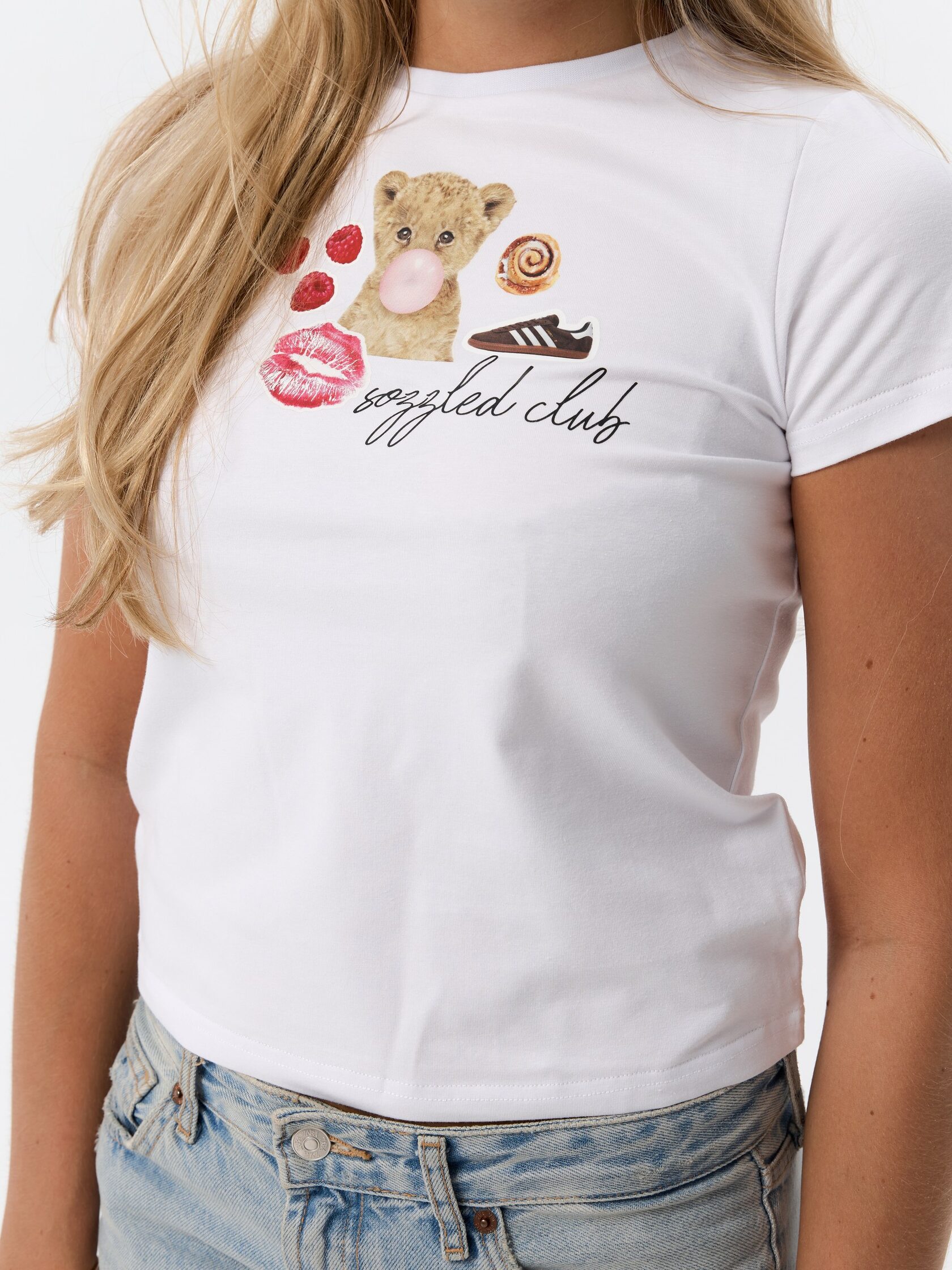Мягкая белая baby tee с точной посадкой, из 92% хлопка и 8% полиэстера. Стильная, с уникальным принтом, добавляющим образу изюминку. Сделано с любовью в Питере.